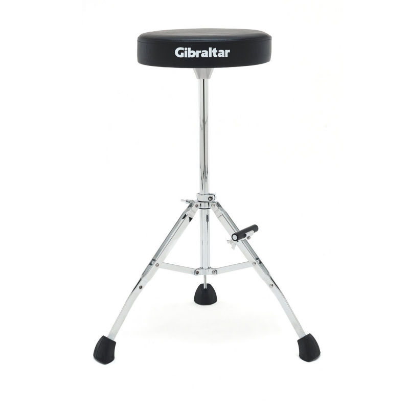 Tabouret pour tous musiciens et différentes applications Assise ronde en Vinyl Diamètre 33 cm / Rembourrage 5 cm Double embase Memory Lock pour la position du trépied Pieds en caoutchouc 'Super Foot' Avec repose-pieds réglable (Trous pour dossier en option) (Dossier en option disponible GI806.214) Hauteur fixe 68 cm